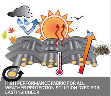 - Dramatic rain dispersion: fabric sheds water as soon as it hits the cover